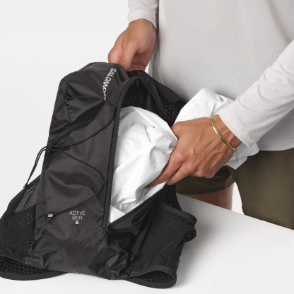長距離トレイルランニングのランクアップの足がかりとなる Active Skin 8 が、さらなる使いやすさと快適な着心地を目指してアップデートされました。ソフトで通気性に優れた素材はそのままで、いっそう安定感のあるフィット。胸ポケットも、フラスクの出し入れがしやすいように改良されています。