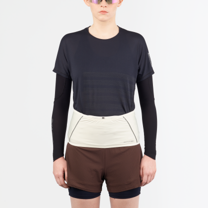 長距離レースでハイドレーションベストが苦手という人には、伸縮性のある High Pulse がおすすめ。ジェルや携帯電話、500ml ソフトフラスクなどを収納できるこのベルトは、当社ベルト製品の中で最も幅が広く、中身が安定して揺れません。豊富なサイズ展開で、自分に合ったフィットを選べます。