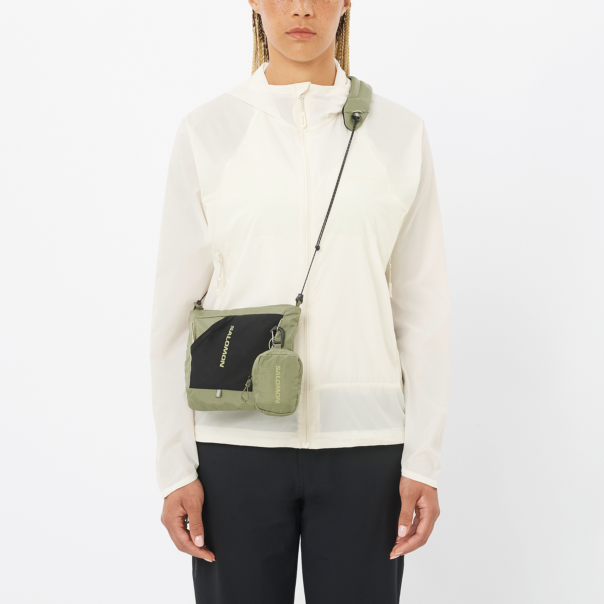 Salomon のヒットモデル。軽量でコンパクトに収納できる汎用性の高いウィンドブレーカーが防風性を発揮。便利で使いやすいこのレイヤーが、日々のさまざまなシーンで快適さとスタイルを提供します。