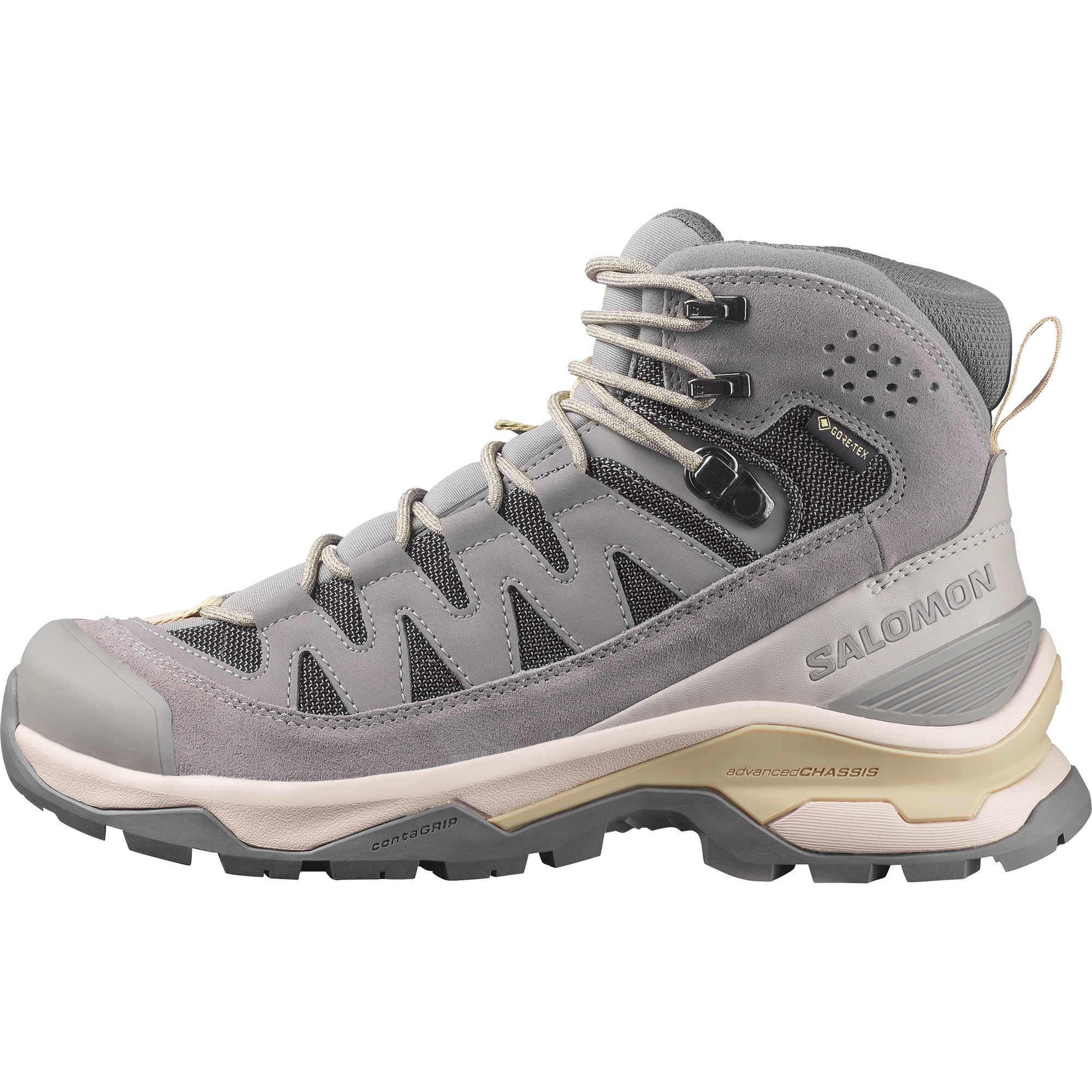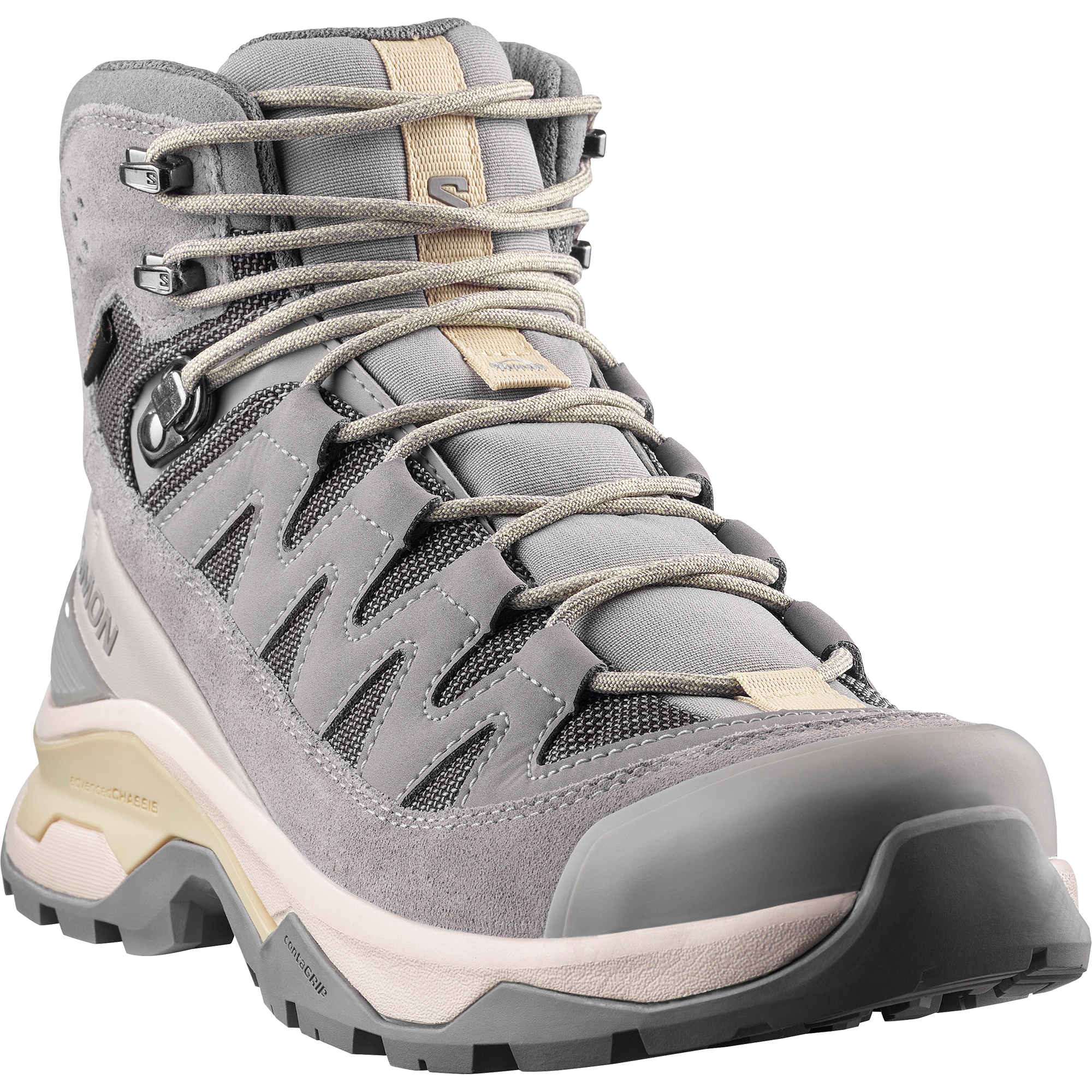 頑丈で軽く、防水性に優れたマルチデイハイキングブーツ、Quest Echo GORE-TEX で人混みから抜け出そう。Salomon の Advanced Chassis™ テクノロジーが、トレイルでもオフロードでも安定した俊敏な動きを可能に。これからの長い旅路に寄り添う、信頼できるモデルです。