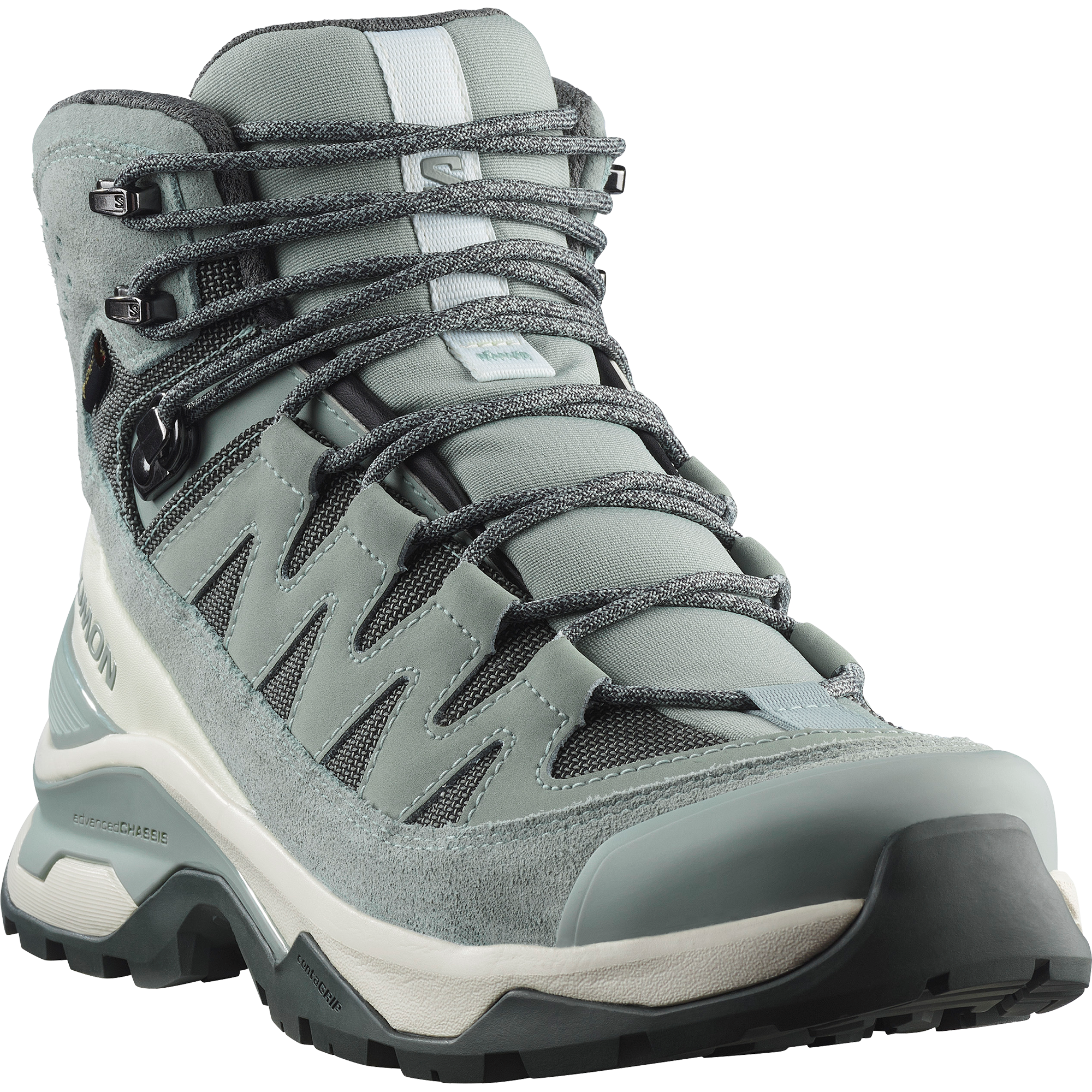 頑丈で軽く、防水性に優れたマルチデイハイキングブーツ、Quest Echo GORE-TEX で人混みから抜け出そう。Salomon の Advanced Chassis™ テクノロジーが、トレイルでもオフロードでも安定した俊敏な動きを可能に。これからの長い旅路に寄り添う、信頼できるモデルです。