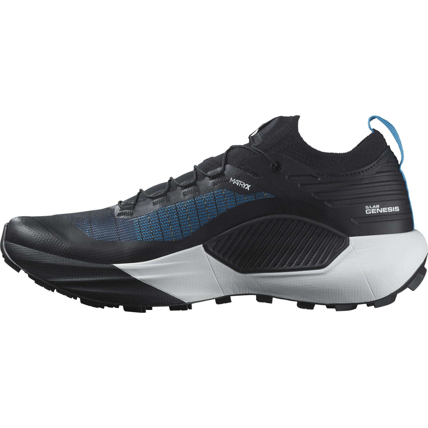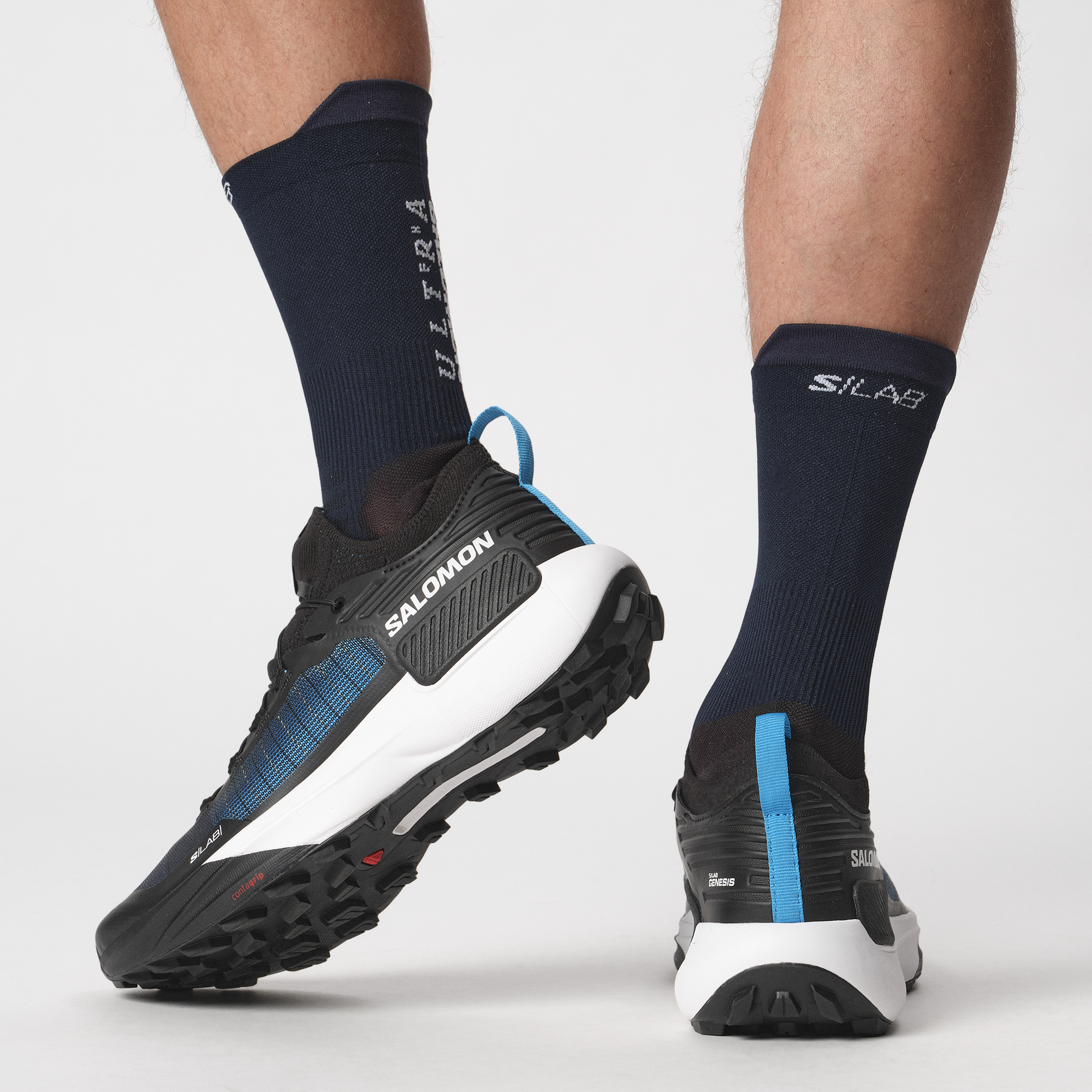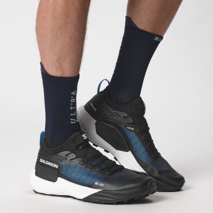 レースの向こう側を目指して。S/LAB Genesis は、コンペティションへのこだわりから解放されて、自己最高記録よりも共有経験を積み重ね、数値ではなくアドベンチャーとして距離を語れるような、トレイルランニングの新しいアプローチを提案します。もちろん、レース仕様の抜群のグリップと優れた保護力、快適さを備えています。