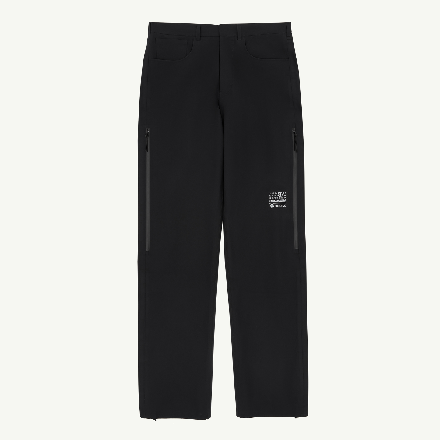 定番のファイブポケットパンツに機能性と高級感のある仕上げをもたらした Salomon Trousers MM6。防水性 GORE-TEX ePE メンブレンに加え、体温調節のためのサイドジップと、悪天候を寄せ付けない足首の締め付け調節機能を装備。貼り合わせたベルトループの丁寧な仕上げが、長い製品寿命を保証します。