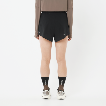 Salomon の最もスリムでミニマルなデザインのスプリットショーツ。速乾性のある GridFlow 素材を使用し、携帯電話用のジップ付き安全ポケットと、ジェル用の跳ねのないスマート収納システムを装備しています。抜群に軽く、ほとんど重さを感じません。