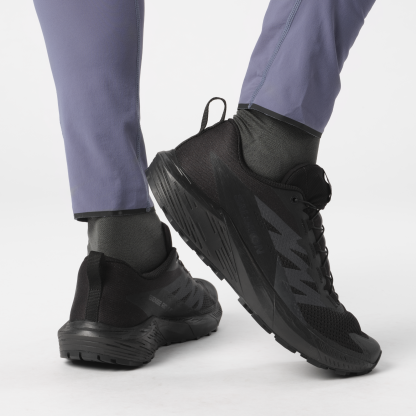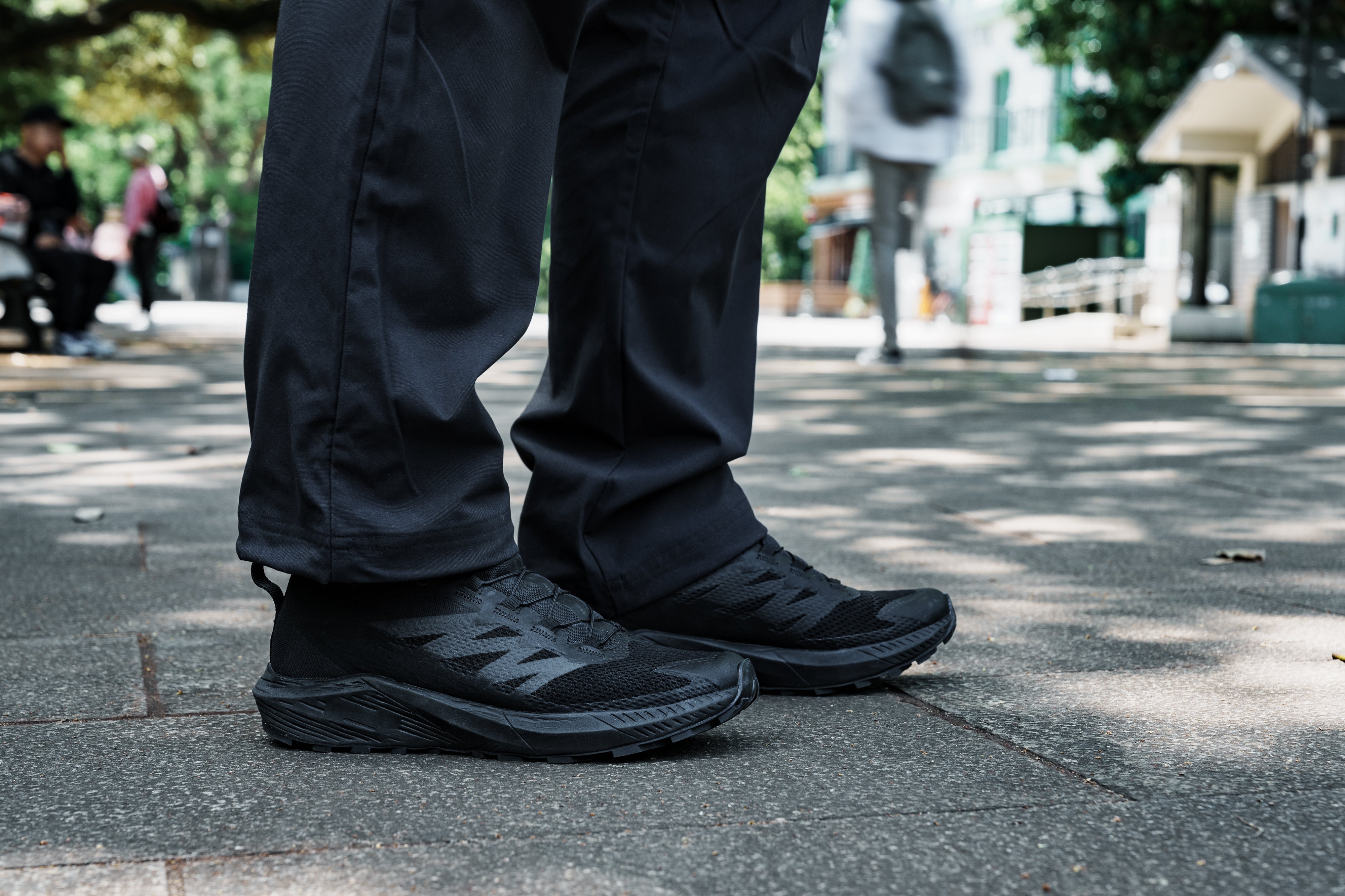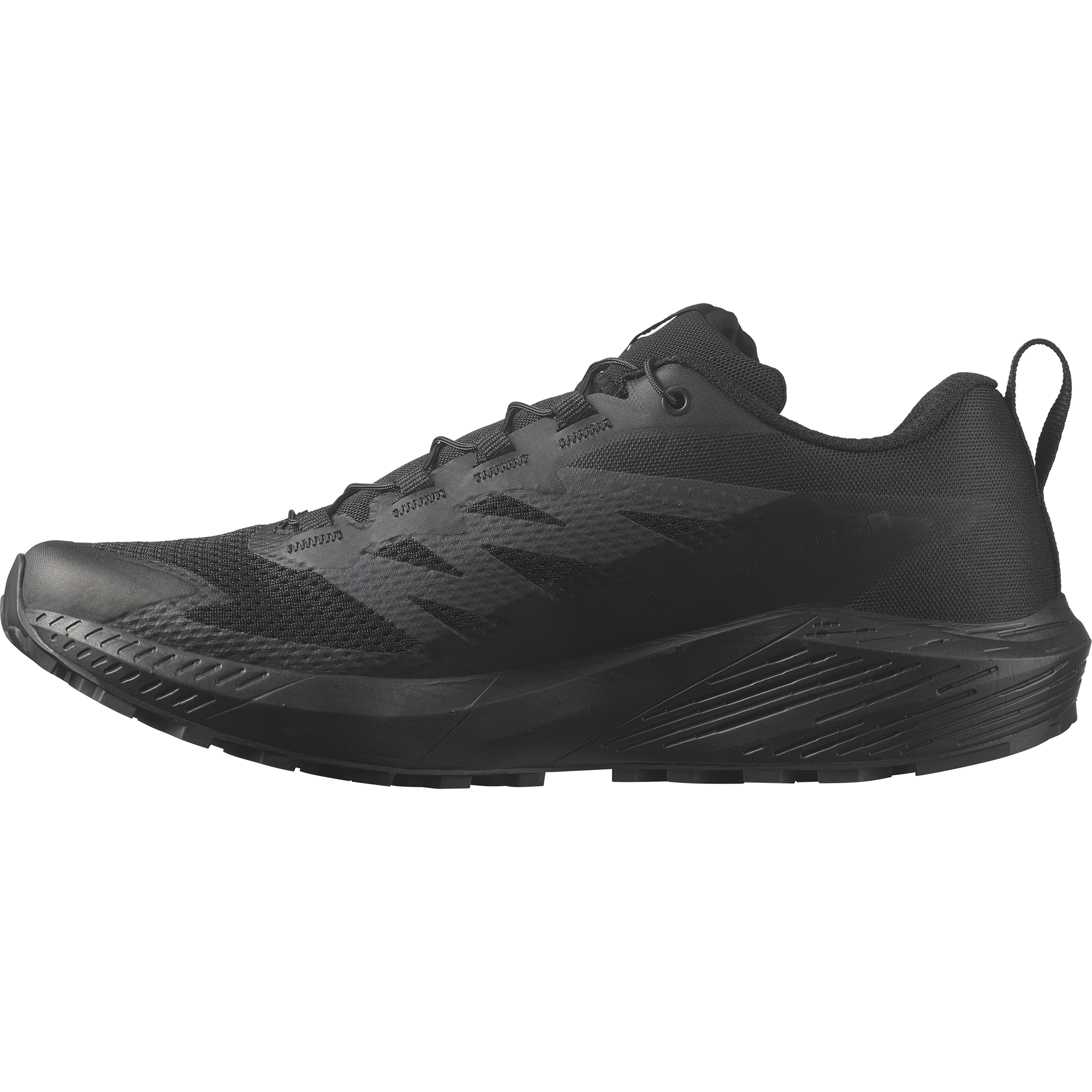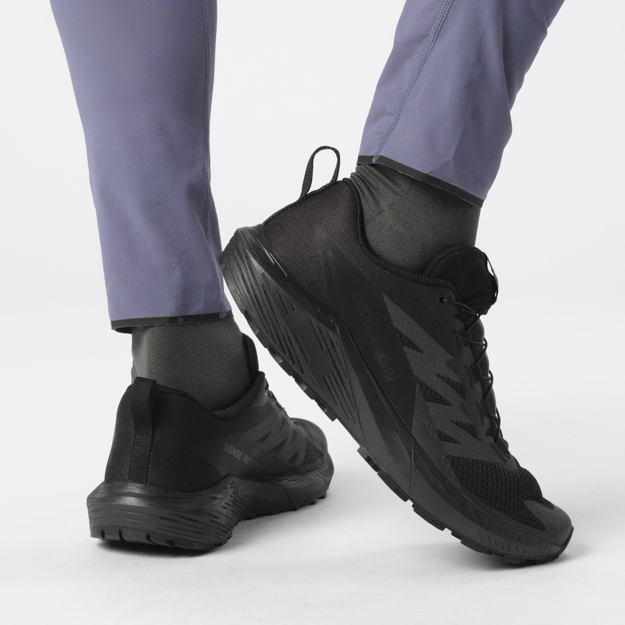 “ここの色が落ち着いた配色だったら…。” “ロゴや製品名がもっと目立たなければ…。” 普段履きとしてのスペックを十二分に満たすトレイルランニングシューズの唯一気になるポイントが、カラーやデザインではないでしょうか。SENSE RIDE 5 SRはそんな需要を満たす、ブラックカラーをベースとしたデザインの普段履き、一般作業、業務用シューズとしての着用もおすすめの一足です。機能面でも、ベースのSENSE RIDE 5の履き心地はそのままに、インドアの床でも滑りにくいアウトソールとなっています(ASTM F2913 規格に準拠)。
