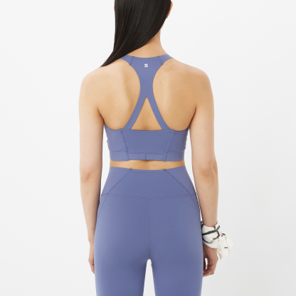 至福の柔らかさとバターのように滑らかなこのスポーツブラは、快適なストレッチスタイル、通気性に優れたオープンスタイルのレーサーバックストラップ、気温が上昇したときにシャツを収納できるループを備え、ランニングに中程度のサポートを提供します。
