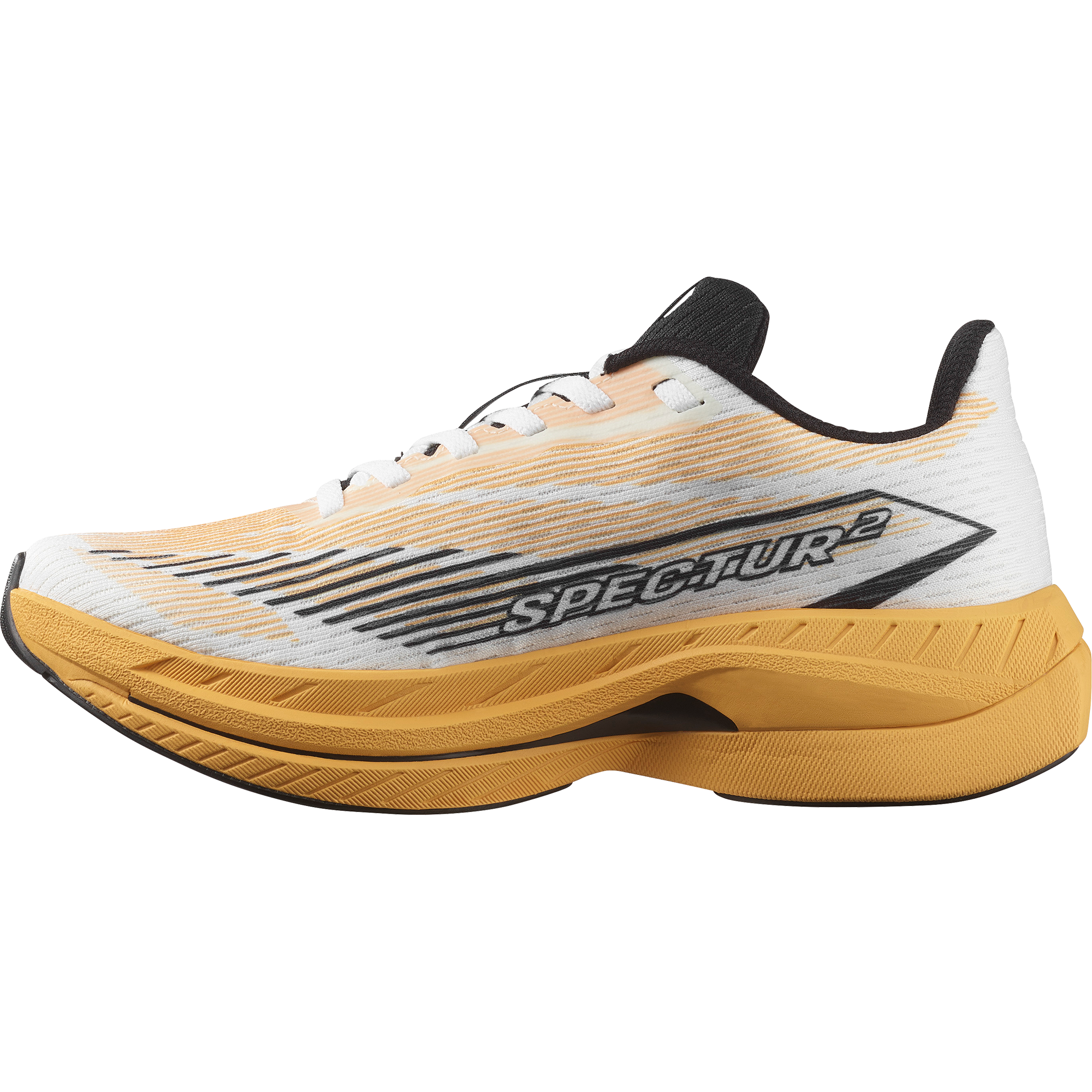 Spectur 2 は、レースを意識したハイペースのトレーニングシューズ。フルレングスで搭載したグラスファイバープレートが生み出すパワフルな推進力と抜群の安定性で、自己記録更新も夢ではありません。ユニークなソール形状と弾力性のあるフォームのミッドソールにより荷重移動がスムーズで、接地時間を最適化します。