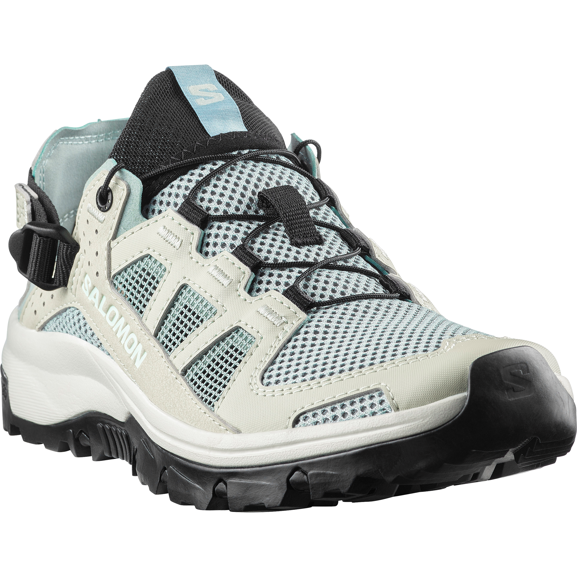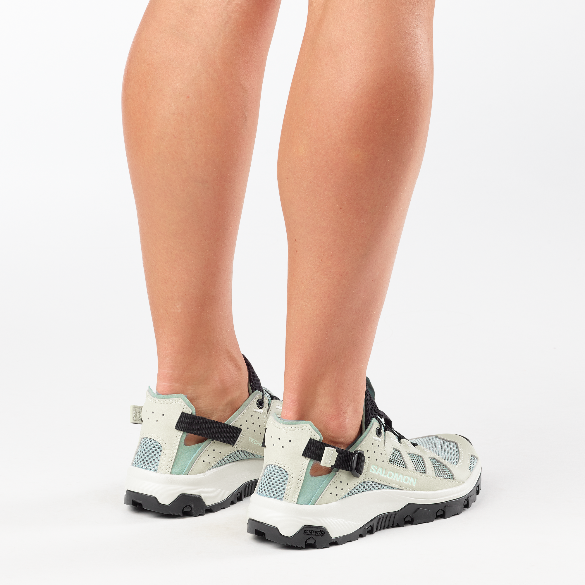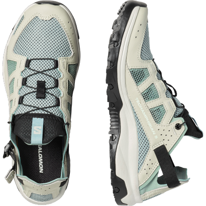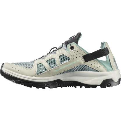 TECHAMPHIBIAN 5 は補強トゥキャップと完全縫合構造により足を確実に保護。アウトソールが地面に密着し、濡れた滑りやすい地面でも信頼できるグリップを発揮します。かかとを折りたたんで履ける多目的に使いやすいデザイン。アッパーには速乾性と通気性に優れた素材を採用しました。