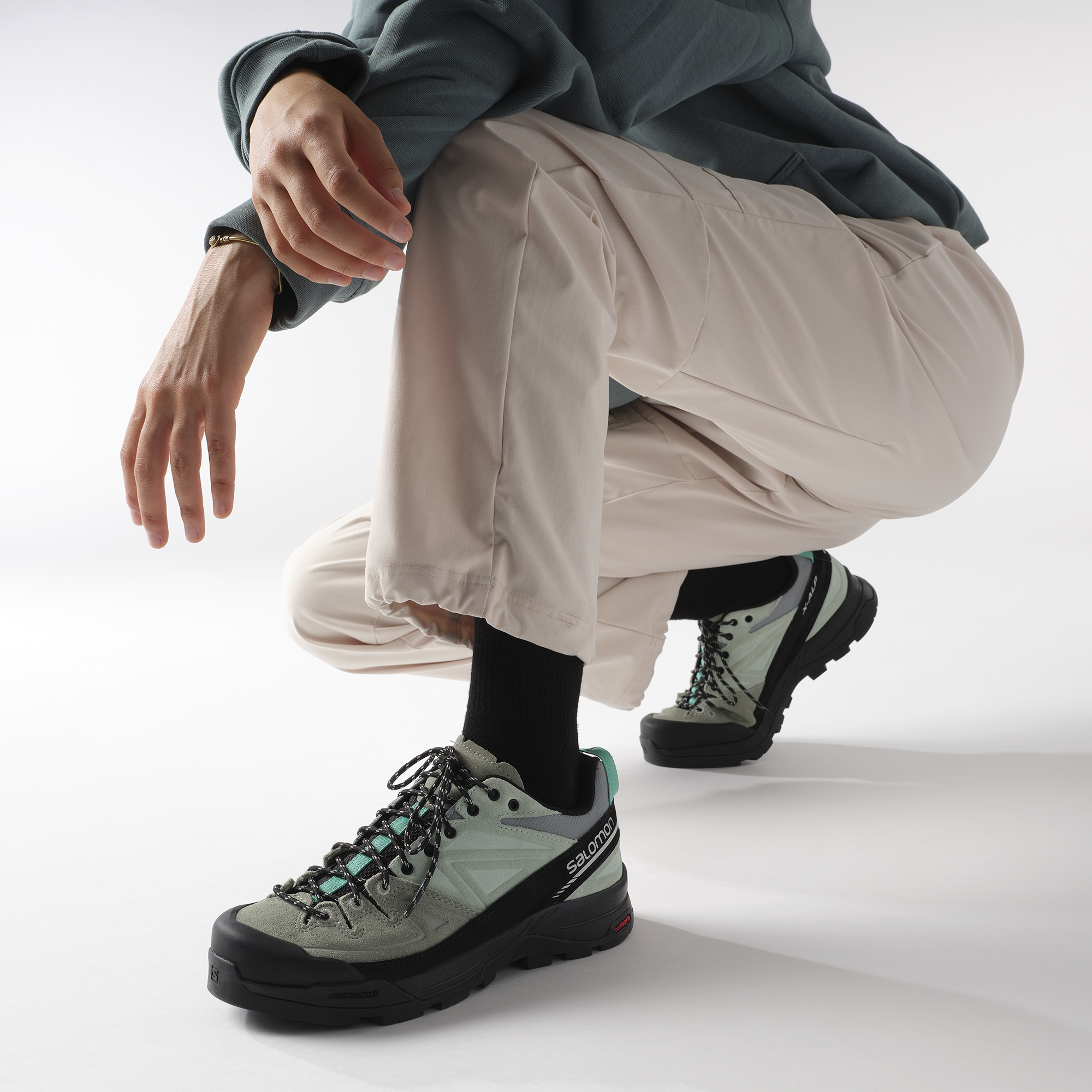 The Broken Arm との 2 度連続のコラボレーションを経て、Salomon のマウンテニアリングの歴史に光を当てる X-ALP LTR が復活。テクニカルなアプローチシューズ感覚で、細部のプロテクションと登山に特化した機能性を融合させ、高級素材と精緻なディテールで仕上げました。