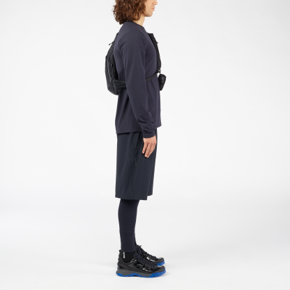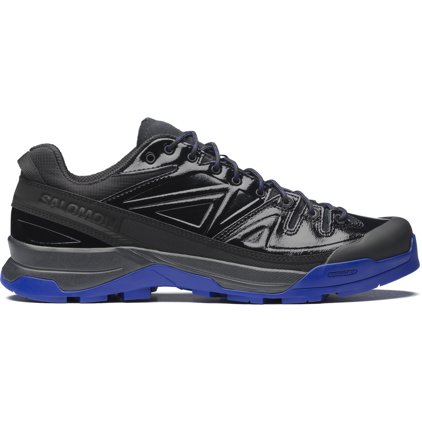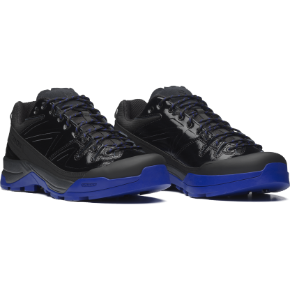 X-Alp Recon は、大自然でのアドベンチャーと極寒の高山氷河に敬意を表し、アプローチシューズとしての要素に、氷河を思わせるブルーの色合いと氷のように輝く質感を融合させています。アッパーのデザインは、高山での偵察任務に使われた装備へのオマージュであり、未知の領域で道を切り開いてきた探検家たちの不屈の精神を称えています。