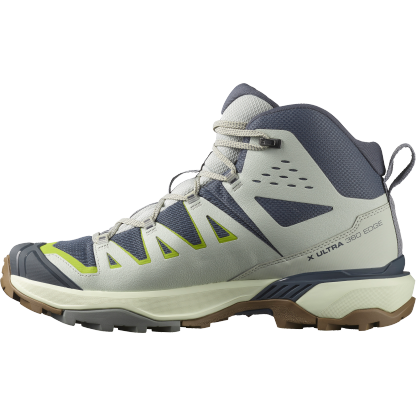 X Ultra 360 Edge Mid GORE-TEX は、全地形対応の優れたグリップと安定性、GORE-TEX による防水性など、X Ultra の機能を踏襲しつつアウトドアの新たな次元を目指すハイキングシューズ。前衛的なラインと鮮やかな色彩が魅力で、アッパーにはリサイクル素材を使用しています。足首の保護を高めるミディアムカットデザインです。