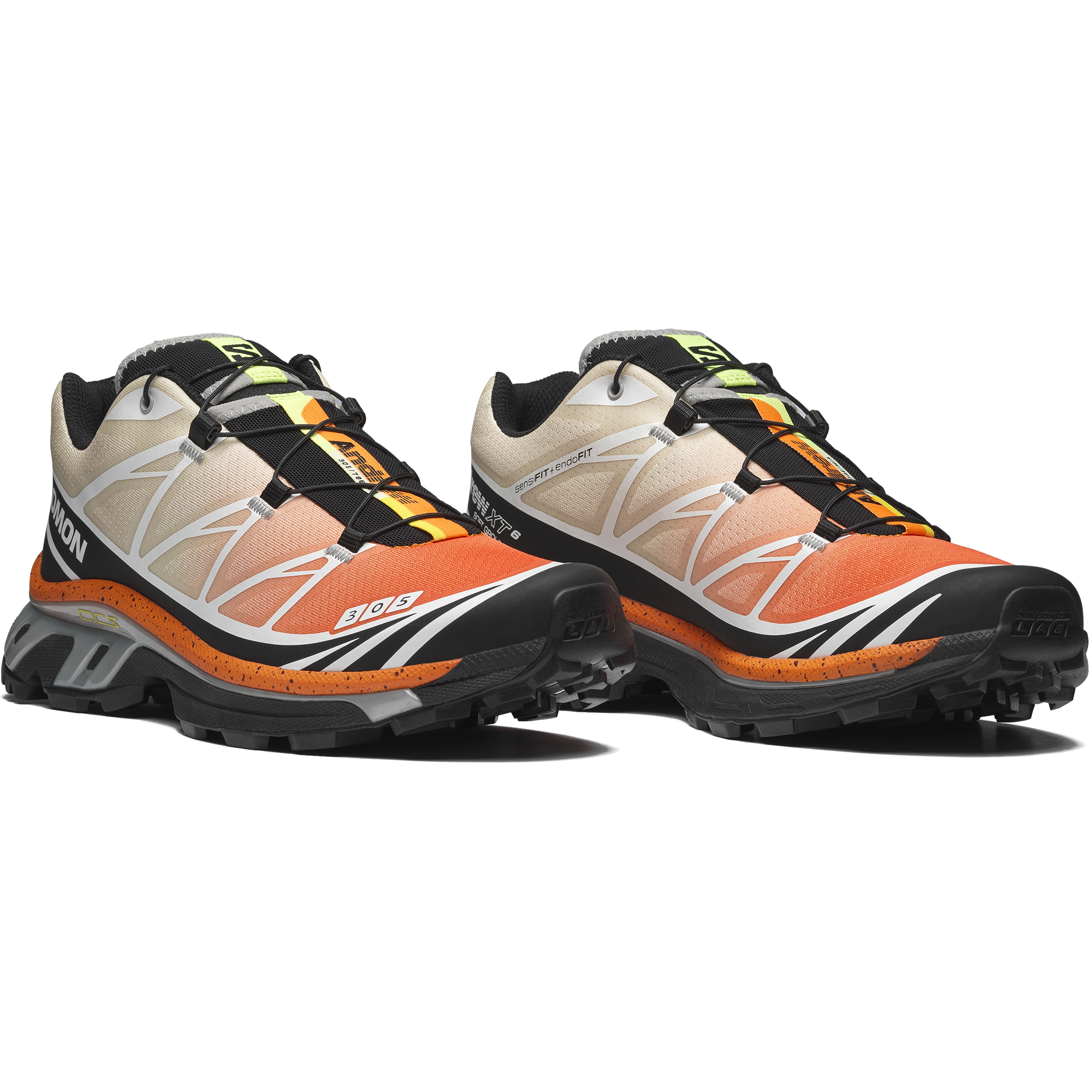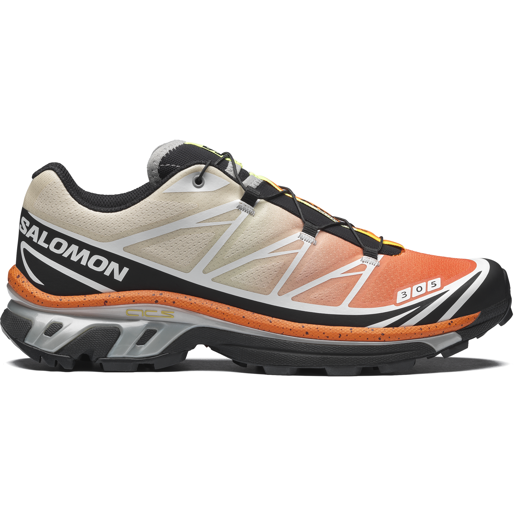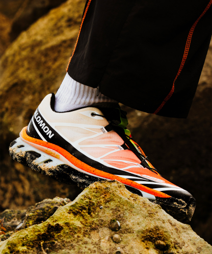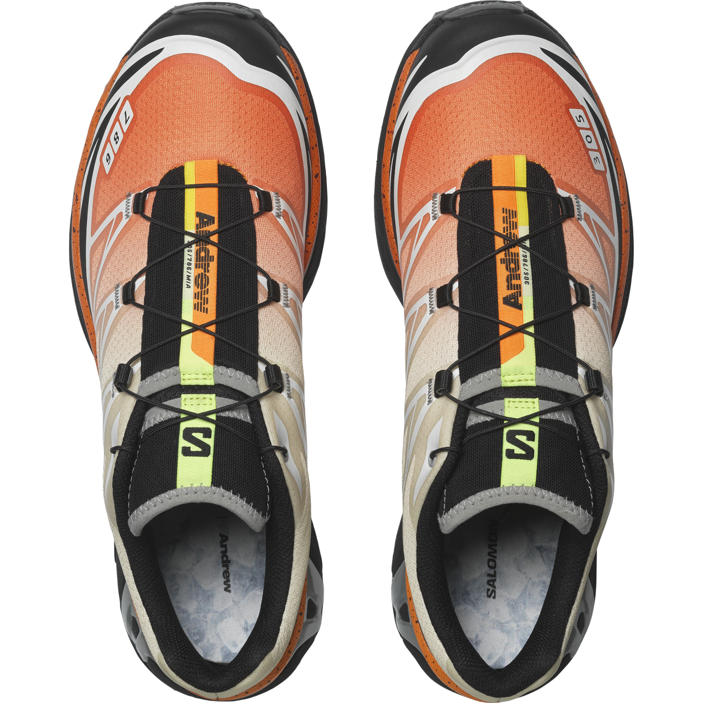 SalomonとAndrewによる初めてのコラボレーション。XT-6 ANDREW は、フロリダの名物・ストーンクラブから着想を得て、マイアミへの愛を込めてデザインされた特別モデルです。 コーラルのグラデーションや甲殻類を思わせるダークな斑点、サービングトレイのような光沢シルバー、さらに柑橘をイメージしたグリーンとイエローを組み合わせ、料理と街の文化を色で表現。ソックライナーには“氷”を思わせるクールなディテールも施されています。 アスリートにも支持される XT-6 本来の機能性はそのままに、色彩・装飾・テーマすべてが「マイアミのエネルギー」を表現した、明るくフレッシュな一足です。
