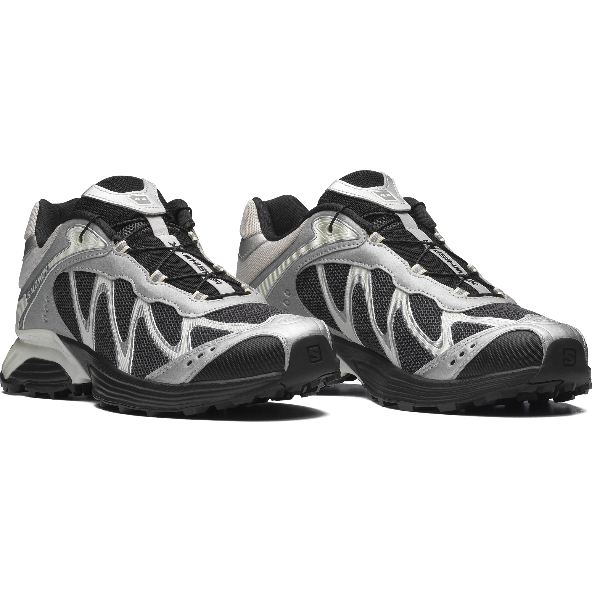 Salomon の DNA と XT のデザイン系譜を受け継ぐ XT-Whisper は、独特の質感や、レイヤー構造の高級感のある仕上げを特徴としています。コントラストのあるディテールが際立ち、リッチな素材を用いたアッパーがモダンな印象を与えます。また、独自の波状の SensiFit™ と Quicklace™ を組み合わせることで、フィット感のある信頼できるホールド感を実現しています。