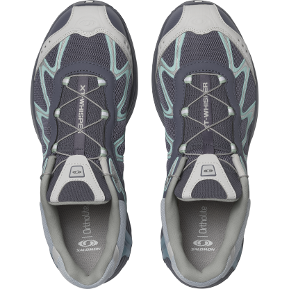 Salomon の DNA と XT のデザイン系譜を受け継ぐ XT-Whisper は、独特の質感や、レイヤー構造の高級感のある仕上げを特徴としています。コントラストのあるディテールが際立ち、リッチな素材を用いたアッパーがモダンな印象を与えます。また、独自の波状の SensiFit™ と Quicklace™ を組み合わせることで、フィット感のある信頼できるホールド感を実現しています。