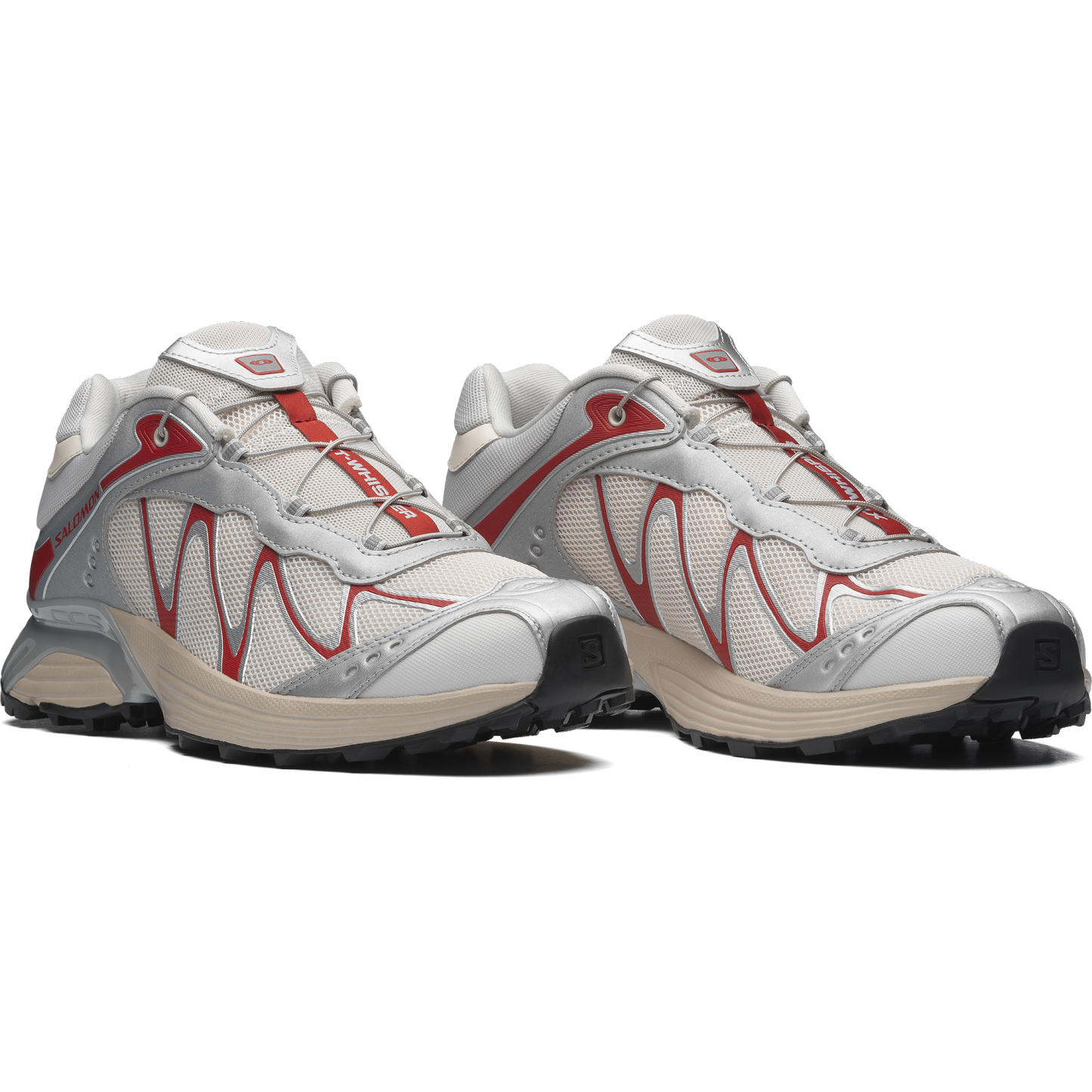Salomon の DNA と XT のデザイン系譜を受け継ぐ XT-Whisper は、独特の質感や、レイヤー構造の高級感のある仕上げを特徴としています。コントラストのあるディテールが際立ち、リッチな素材を用いたアッパーがモダンな印象を与えます。また、独自の波状の SensiFit™ と Quicklace™ を組み合わせることで、フィット感のある信頼できるホールド感を実現しています。