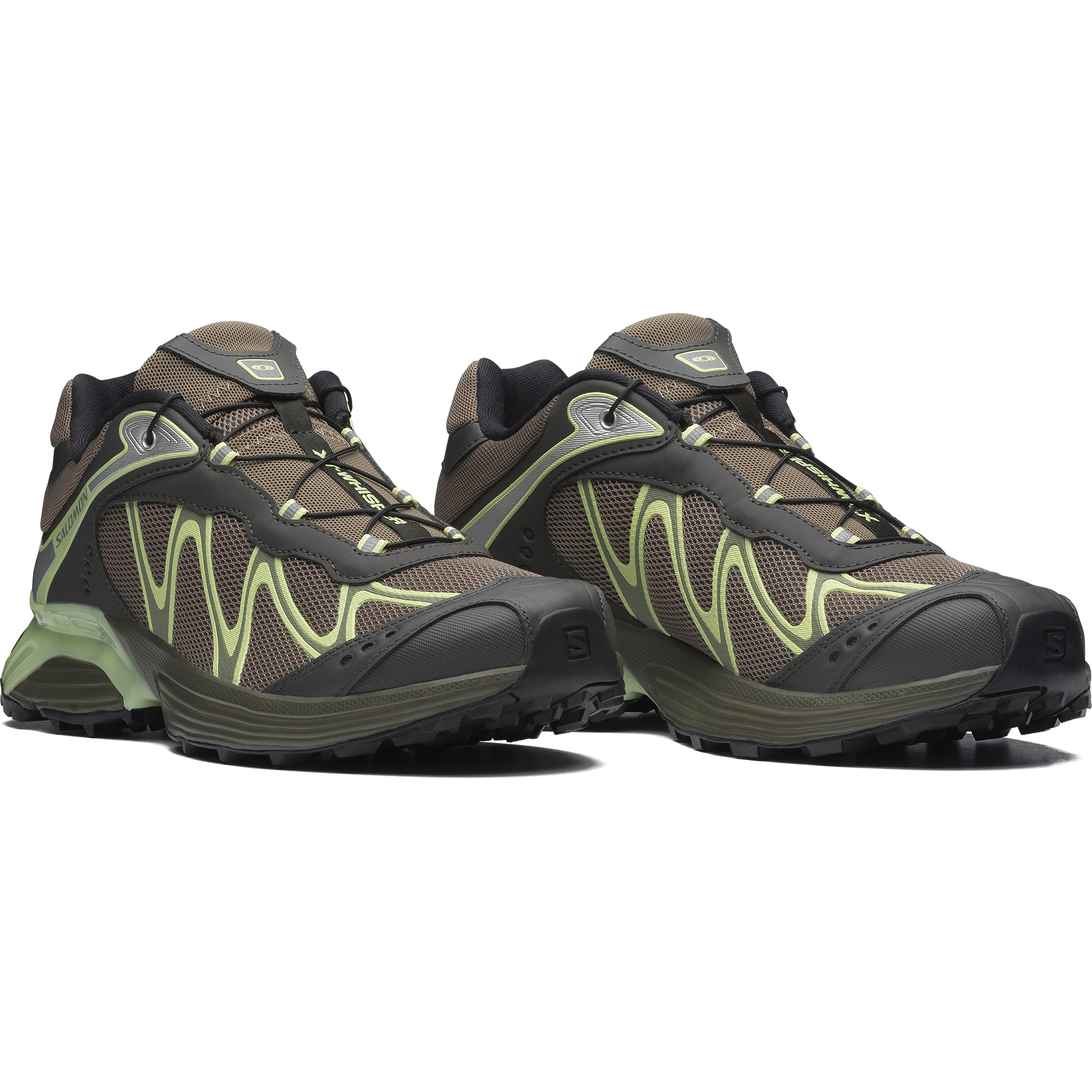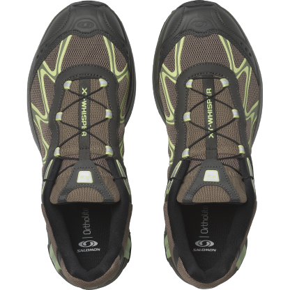Salomon の DNA と XT のデザイン系譜を受け継ぐ XT-Whisper は、独特の質感や、レイヤー構造の高級感のある仕上げを特徴としています。コントラストのあるディテールが際立ち、リッチな素材を用いたアッパーがモダンな印象を与えます。また、独自の波状の SensiFit™ と Quicklace™ を組み合わせることで、フィット感のある信頼できるホールド感を実現しています。